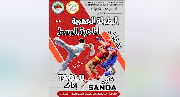 أعلنت الاتحادية الجزائرية للكونغ فو وشو عبر موقعها الرسمي عن تنظيم فعاليات التصفيات الجهوية لناحية الوسط في الفترة الممتدة ما بين 09، 10 و11 فيفري الجاري القاعة المتعددة الرياضات بوسماعيل ولاية تيبازة.