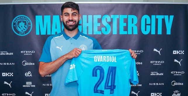 أعلن نادي مانشستر سيتي الإنجليزي، السبت، عن تعاقده رسميًّا مع الكرواتي جوسكو غفارديول، قادمًا من نادي لايبزيغ الألماني، بعقدٍ يمتد إلى 5 سنوات قادمة، أي إلى غاية عام 2028، وقال بطل إنجلترا وأوروبا الموسم الماضي عبر موقعه على الإنترنت إنه استكمل التعاقد مع المدافع البالغ عمره 21 عامًا ليصبح ثاني صفقات الفريق هذا الصيف، بعد ضم مواطنه الكرواتي ماتيو كوفاسيتش من تشيلسي، ورغم عدم كشف السيتي عن قيمة الصفقة فهاك تقارير إعلامية بريطانية ذكرت أن المدافع الكرواتي انضم مقابل 90 مليون يورو (99 مليون دولار)، ليصبح ثاني أغلى مدافع في التاريخ بعد الإنجليزي هاري ماغواير الذي انضم إلى مانشستر يونايتد مقابل 80 مليون جنيه إسترليني (101.98 مليون دولار) في 2019.