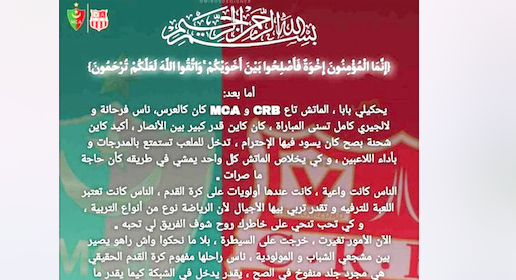في مبادرة أكثر من رائعة وأخوية تعبر عن خصال الإنسان المسلم، أطلق أنصار كل من مولودية الجزائر، إتحاد العاصمة، وشباب بلوزداد مبادرة لنبذ الفتنة ولم الشمل بين أنصار الأندية العاصمية.