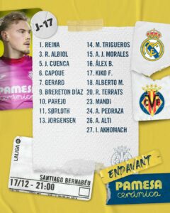 حيث سجل ماندي غيابه عن الميادين لفترة طويلة ليعود إلى قائمة فياريال الخاصة بمباراة ريال مدريد مساء اليوم الأحد.